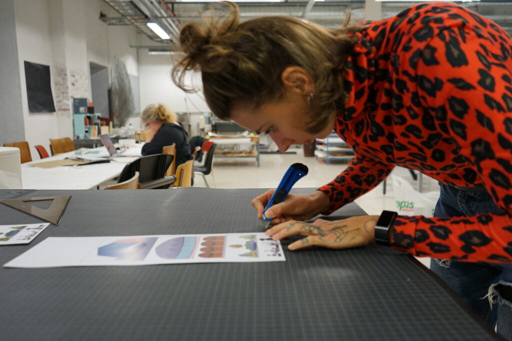 Modellen skulle være visuelt attraktiv, men samtidig funksjonell og med praktisk anvendning. På Tou fikk Lucia en omvisning og ble kjent med blant annet kunstnere på Tou Trykk, noe som ble en betydelig inspirasjon til utvikling av ideen hennes. Kunstnere på verkstedet har kompetanse på bokbinding, noe som viste seg å være til stor hjelp. Lucia pratet med kunstnerne, fikk se på arbeidet deres, tilbrakte tid på verkstedet og begynte å få tanker rundt utforming av modellen.