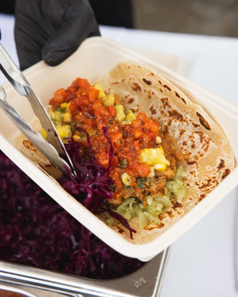 - Pulled beef med pinapple salsa. Taco med pulled beef fra Idsøe i lefse fra Como Mexico, bakt annanassalsa, syltet rødløk, jalamayo, urtemiks og lime. Totopos og pico de gallo på siden. Allergener: Egg, soya, gluten (i tortilla), sulfitt