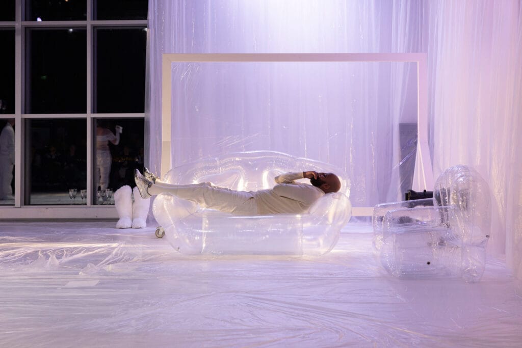– Jeg har gjort et intensivt dypdykk i det som kalles emosjonsbasert parterapi og kunstterapi. Jeg var opptatt av at parterapeuten skulle ha sin egen faglige inngang til å prøve å forstå dette paret på en litt absurd alternativ måte. Dette er satire.